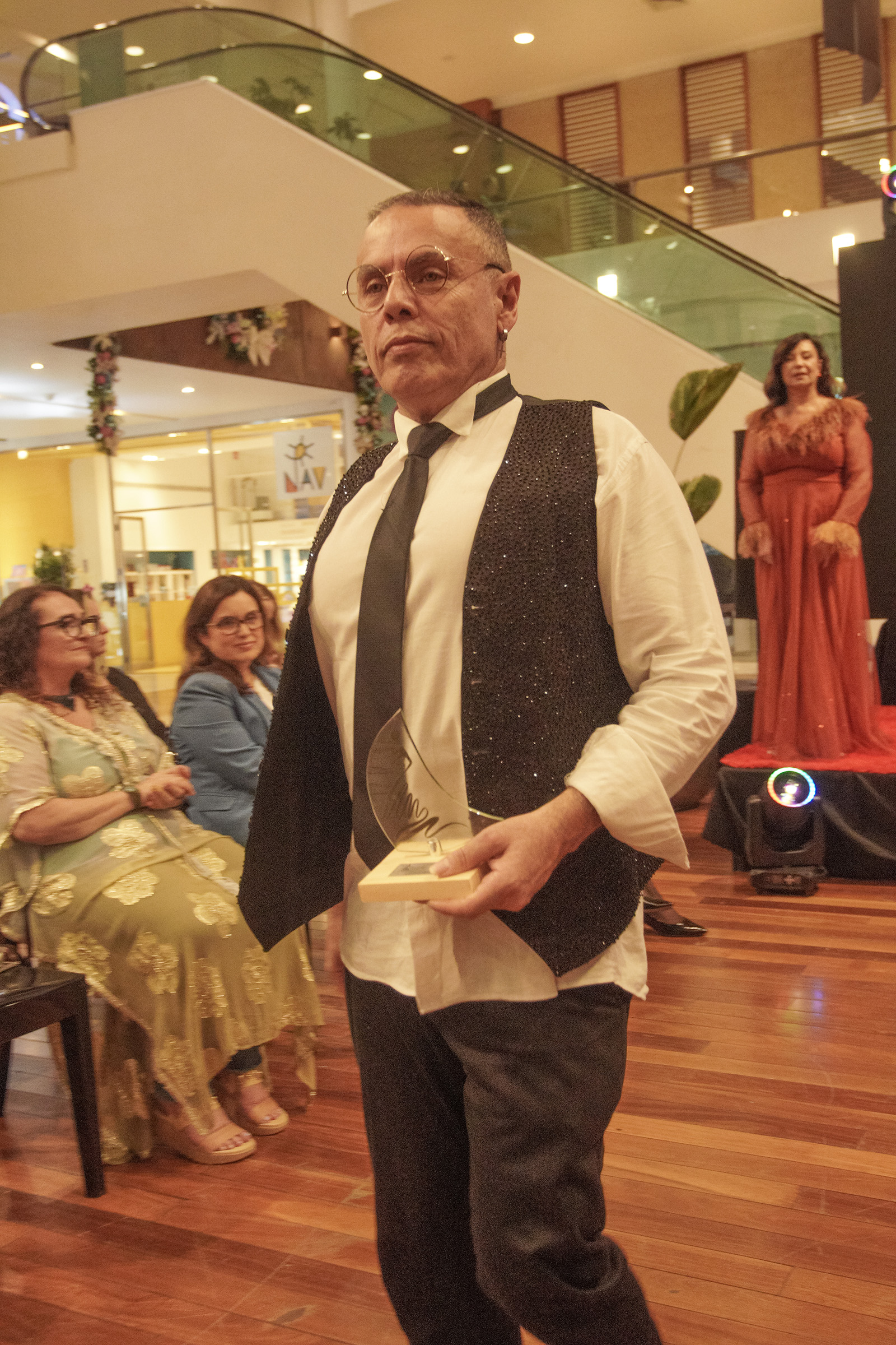 No Prêmio Profissionais da Beleza e da Moda 2025, Edson Eddel emocionou a plateia com um desfile conceitual que foi muito além da moda festa. Com uma trilha sonora exclusiva — criada especialmente para narrar sua trajetória —, apresentou ao público o tema “Edson Eddel: um artista, um criador”, em uma performance que uniu memória, identidade e expressão estética. Cada entrada da passarela se conectava ao enredo musical, transformando o desfile em um verdadeiro espetáculo cênico.