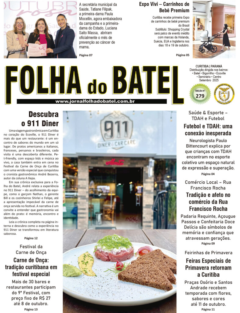 Curitiba segue assim: cidade que inova sem esquecer suas raízes, que celebra a vida nas mesas, nos palcos, nas ruas e nas feiras, mas que também reflete sobre os desafios da saúde, da educação e da mente. Esta edição da Folha do Batel é um convite a percorrer esse mosaico de experiências e reflexões, que fazem do presente um elo vivo entre passado e futuro. Boa Leitura !!!